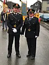 HØYTIDELIG: I T1-uniform gikk mor og sønn sammen, politioverbetjent Mariann Heimlund og politistudent Michael Heimlund (25), i 17.mai-toget i Kabelvåg i Vågan kommune.