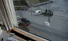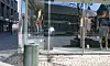 Politibetjent Erik Håland ved hushjørnet hvor han sto under Nokas-ranet. Han var utrolig heldig – glassrutene var satt opp for en tidligere leietaker: Norges Bank. Politimannen berget livet.Ole Martin Mortvedt