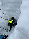 Et overheng med is, som det hadde gått ras fra den første dagen, ble vurdert som enda mer ustabilt og farlig, ettersom både temperaturen og vannføringen hadde økt. Fossen som mannen hadde forsvunnet inn i, forsvant inn under et rundt 150 meter langt strekk av tykke snø- og ismasser.