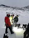 Når nødtelefonen kommer inn til politiets operasjonssentral kort tid senere, blir det slått full alarm. Redningshelikopteret SAR Queen er raskt på vingene. To av politiets hundeførere rykker ut, og frivillige i Alpin redningsgruppe blir varslet.