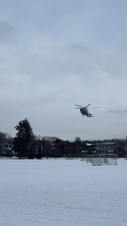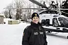 Nå følger jeg spent med på det svart- og hvitmalte politihelikopteret som sirkler seg ned for landing.