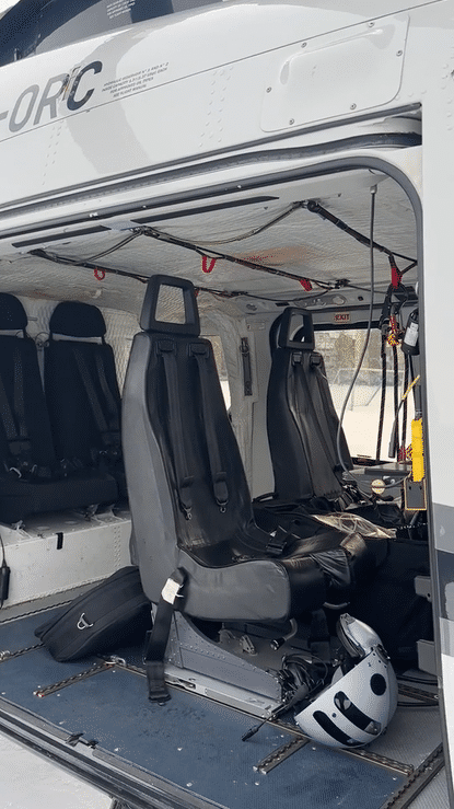 Stemningen i helikopteret endrer seg – akkurat som om en bryter skrus på. Piloten rekker hånda bak og ber om våpenet sitt, som hentes frem fra en bag i midten av helikopteret.