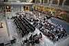 Cirka 100 studenter ble uteksaminert i Oslo rådhus, etter en ekstra kort oppstilling i bakgården på PHS på Majorstua tidligere på dagen - grunnet den stekende heten i hovedstaden.