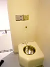 TUNGVINT: Verneombud Hanna Dahlsbakken peker på åpne toaletter med brunt belegg som en medvirkende årsak til at den provisoriske treningscella har blitt stengt. – Jeg er usikker på om det er vasket der siden arresten ble lagt ned, sier hun.Click to add image captionFoto: Privat