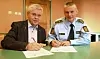 Artikkelforfatteren mener arbeid i politirådet må prioriteres i langt større grad enn i dag. Her signerer tidligere Bodø-ordfører Ole H. Hjartøy og politistasjonssjef Arne Hammer avtalen om å danne politiråd i Bodø våren 2015. Bildet er et illustrasjonsfoto og har ingenting med innholdet i kronikken å gjøre.