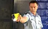 Han forteller at et digitalt kamera innfelt i skjeftet på Taseren starter når elektrosjokkvåpenet blir aktivisert.