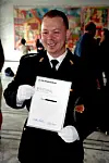 Ernst mottar vitnemålet og er ferdig utdannet politimann.Privat