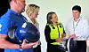 Erfaringene med en «high visibility» vernevest og hjelm til massetjeneste i Storbritannia diskuteres i inernasjonalt fora. Her ved Magnus Wass fra Rikspolisstyrelsen i Sverige, Marloes Siewes fra VTSPN ved politiet i Nederland, Inger Marie Pedersen fra Politiets Fellestjenester og Andy Mellows fra CAST under Home Office i Storbritannia.