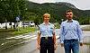 Politibetjent Mari Stene ved Meldal lensmannskontor, sammen med Meldal-ordfører Are Hilstad (Ap).