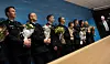 Justisminister Anders Anundsen (helt til høyre) ansatte blant annet politimester Steven Hasseldal (helt til venstre) i fjor vinter. Nå mener han Hasseldal har gjort en for dårlig jobb når passkøene har vært lange.Torkjell Trædal