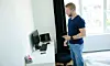 Han tusler rundt i sokkelesten på den glatte parketten hjemme i den lyse leiligheten på Årvoll i Oslo. Leiligheten er hans kontor nummer to. For når han går av vakta som arrestforvarer, går han på jobben som apputvikler hjemme i stua med hvite vegger.