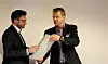Monika-varsleren Robin Schaeffer mottar PFs Ildsjelpris av Sigve Bolstad.