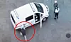 Videobilder fra et annet overvåkningskamera viser hvordan 23-åringen går mot politikvinnen.