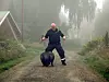 For å redde skinnet til grisen, flesket Foseid til, og fikk ledet purka inn på den smale sti.