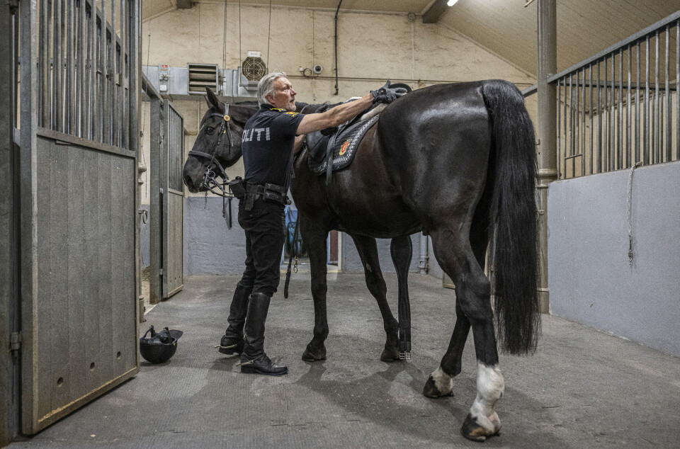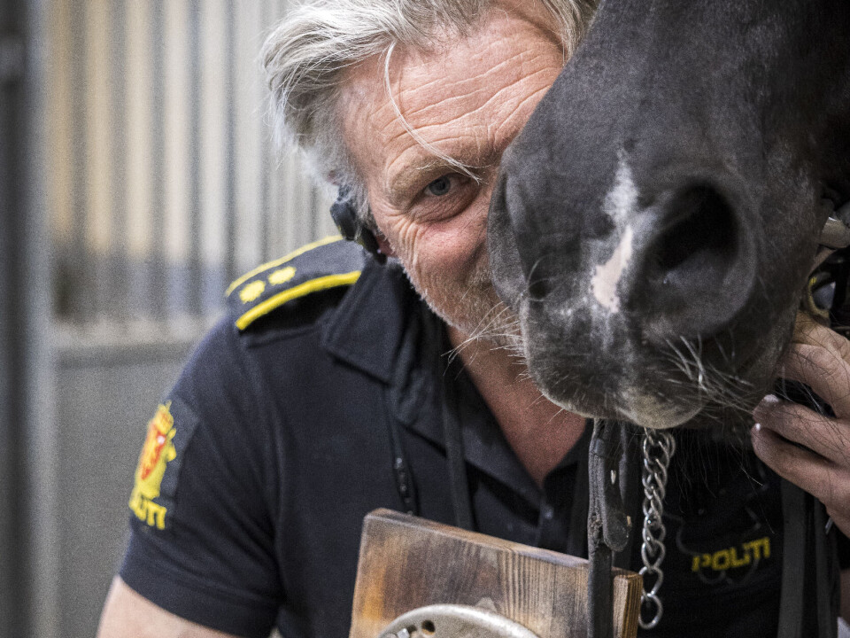 Det sies at hesten låner oss vingene vi mangler. Og hadde hesten valgt, hadde den kanskje vært på en grønn eng og gresset. Så det å få hestene til å trives med jobben som politihest, krever mye trening. Men Rolf tror Tyr koser seg med all oppmerksomheten.